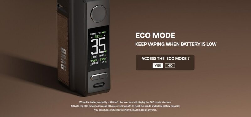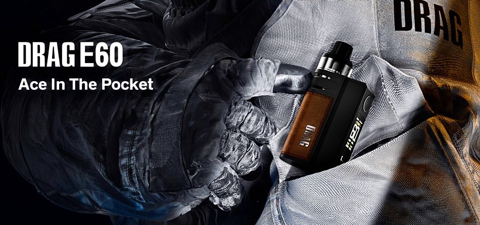 Κατασκευασμένο σε ένα ενιαίο σώμα από δέρμα και μέταλλο, σε συνδυασμό με την κρυφή ρύθμιση αέρα και την οπή αναπλήρωσης του υγρού, το DRAG E60 επιδεικνύει μινιμαλιστικό σχεδιασμό και κομψό στυλ.